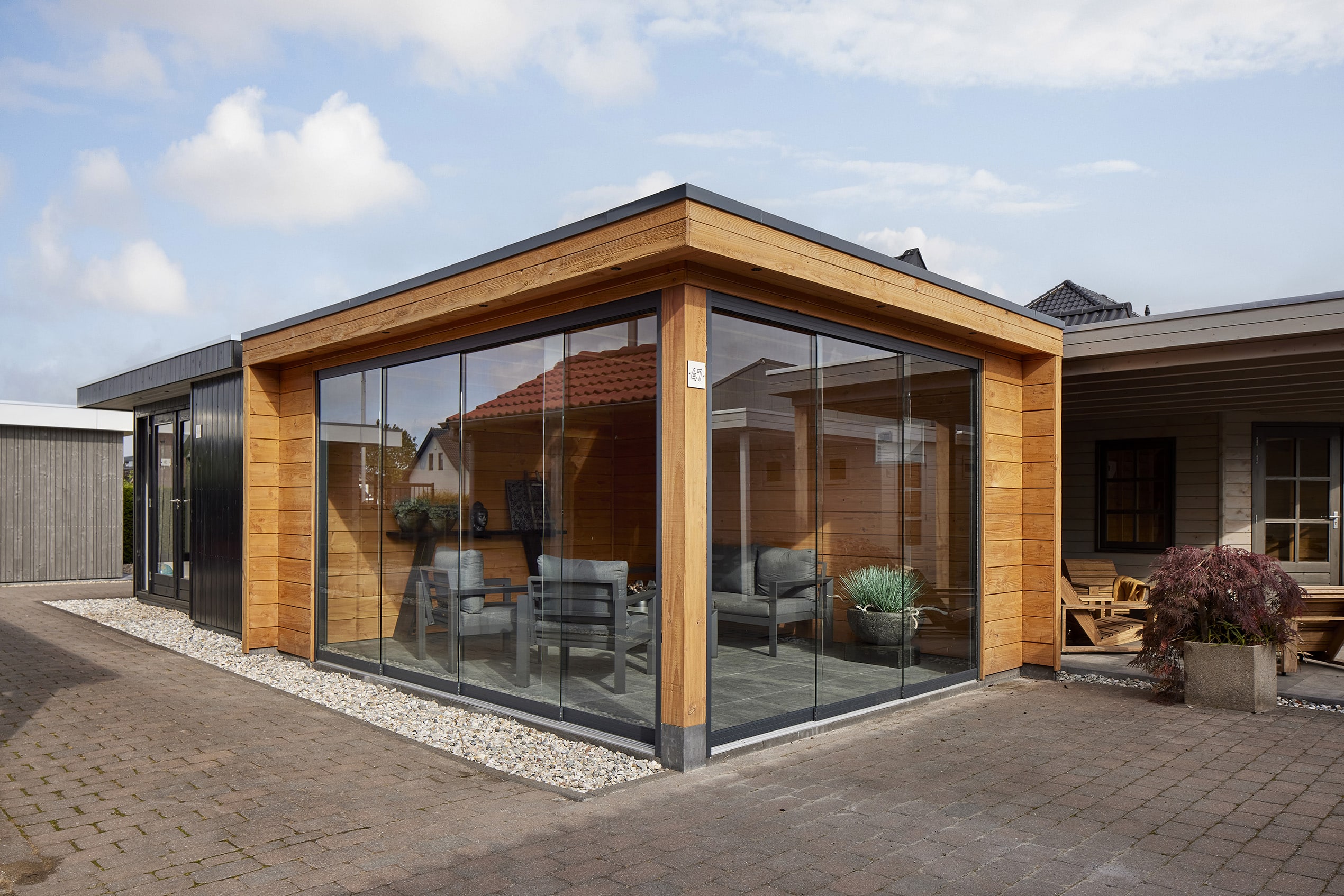 Met een stijlvolle glazen schuifwand creëer je een beschutte plek onder je overkapping, zodat je het hele jaar door van de natuur kunt genieten. De glazen schuifwanden van Glaskong worden in eigen huis geproduceerd en op maat gemaakt, wat zorgt voor een snelle levering. Stel je ideale schuifwanden samen en maak je veranda compleet.
